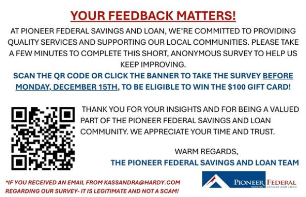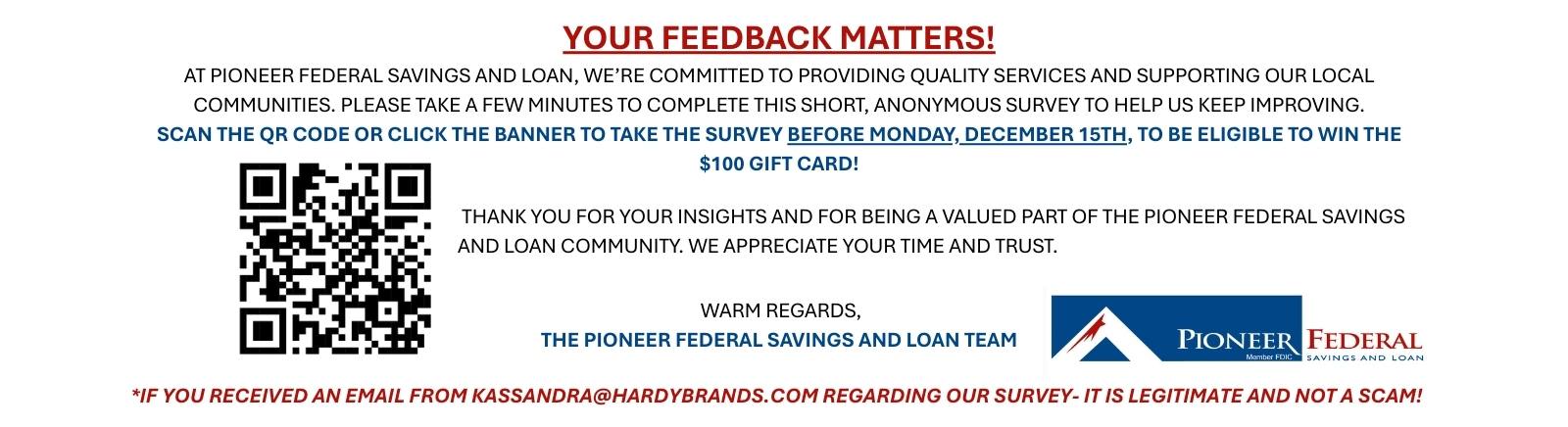Pioneer Federal Savings and Loan Association is dedicated to providing quality services and products to its customers all the while remaining financially strong and adding value to the quality of life in the communities it services.